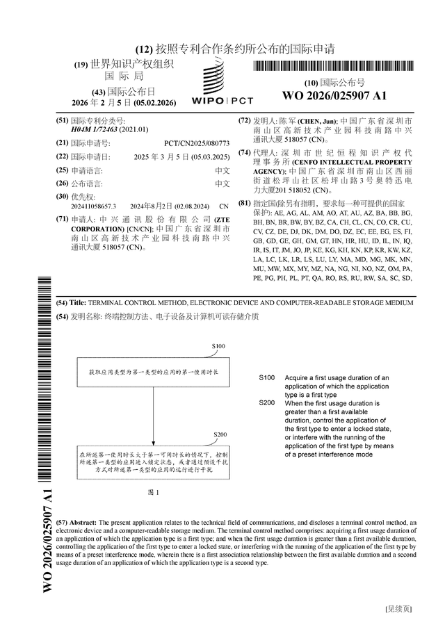 证券之星消息,根据企查查数据显示中兴通讯(000063)公布了一项国际专利申请,专利名为“终端控制方法、电子设备及计算机可读存储介质”,专利申请号为PCT/CN2025/080773,国际公布日为2026年2月5日。