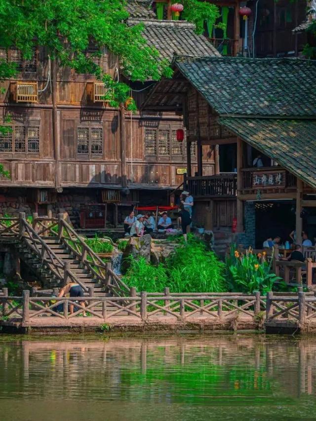 古镇依着杨柳河而建,一排吊脚楼悬在水上,下雨时,河面起雾,远山如黛,那画面活脱脱就是从宋画里搬出来的,坐在百年榕树下的茶馆喝茶,看雨丝从青瓦屋檐滴落,什么烦恼都能被冲刷干净。