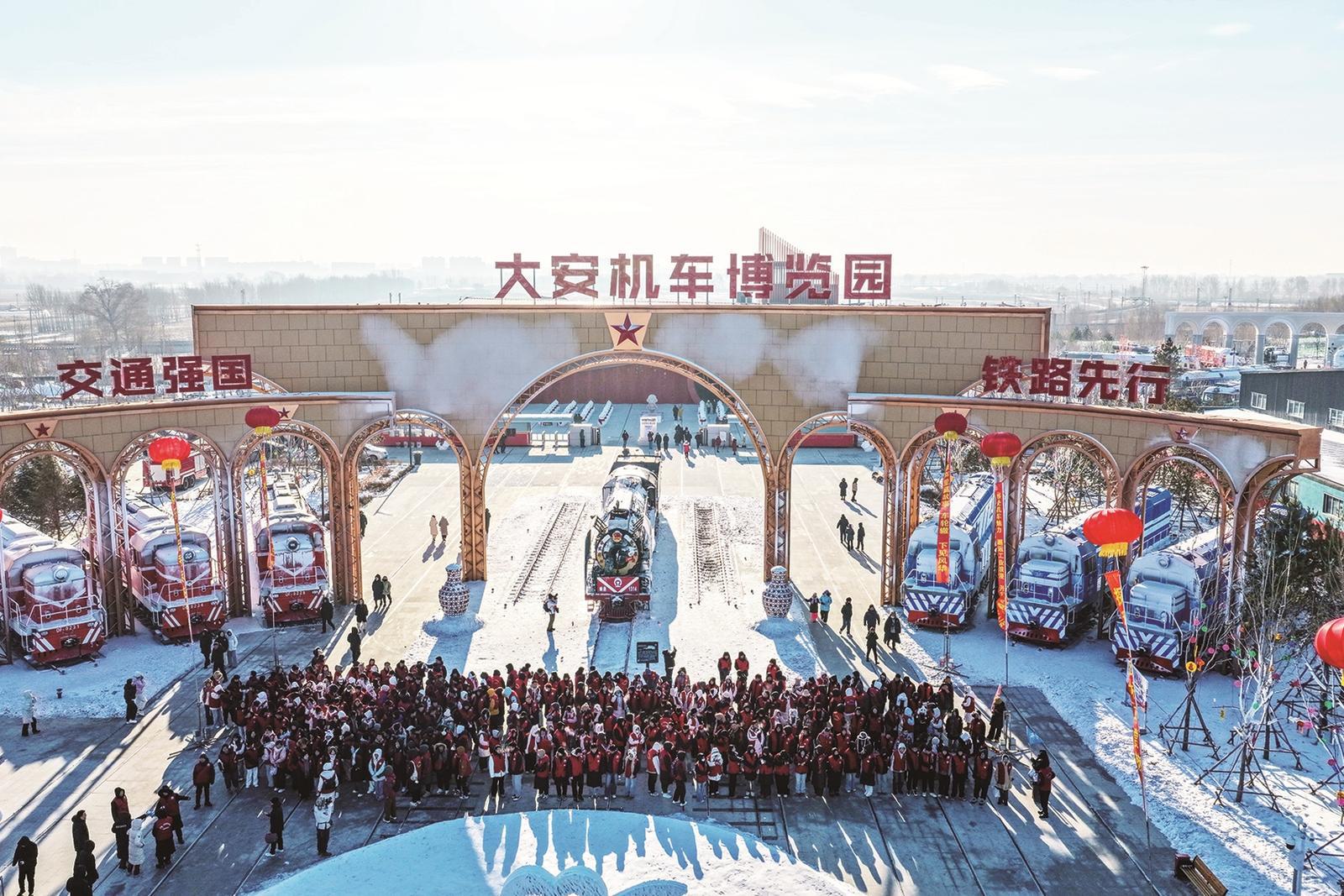 1月18日,大安市冰雪旅游季系列活动暨首期北京高校“青春铁路社群”研学营开营仪式在大安机车博览园拉开帷幕。 李晓明 摄